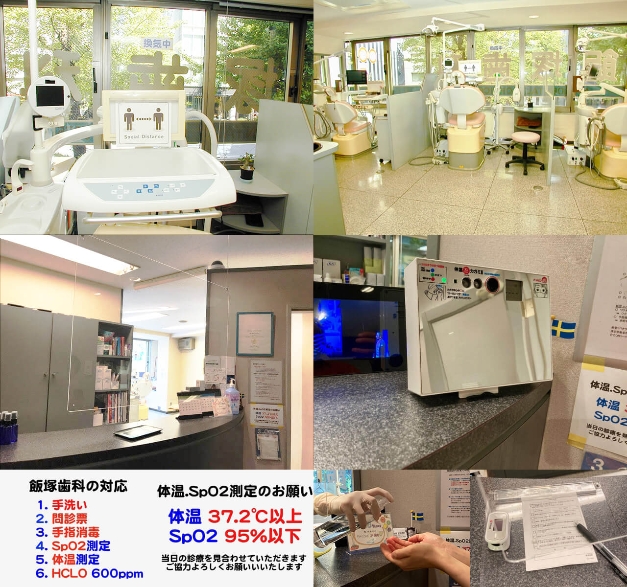 院内には顔を近づけるだけで体温が測れる完全非接触体温計や、パルスオキシメーターによるSpO2の計測