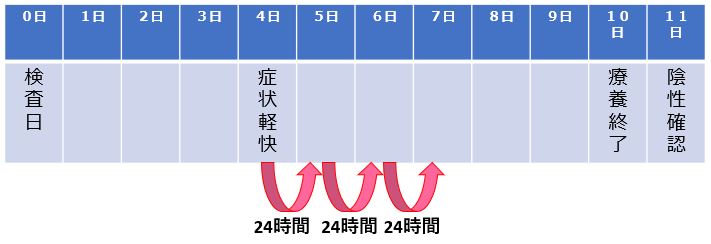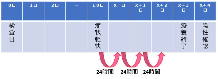 検査日から10日目以降に症状が軽快した場合、症状が軽快した日から72時間後に
