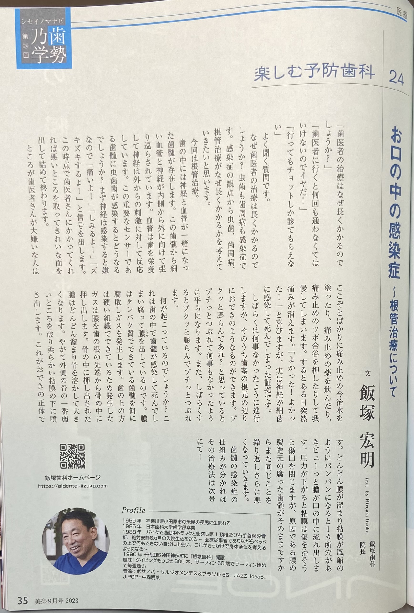美楽 2023年9月号『お口の中の感染症』〜根幹治療について〜