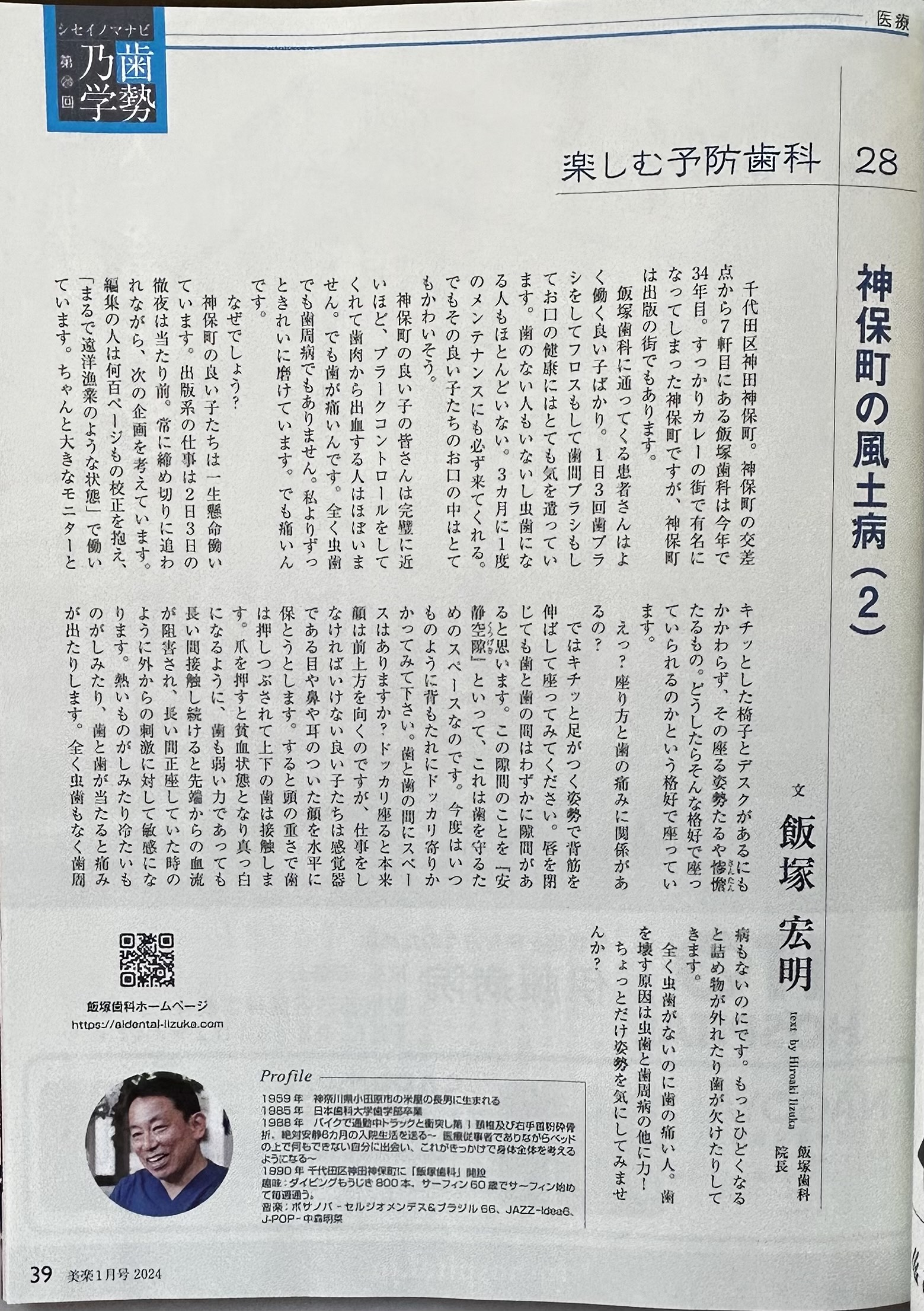 神保町の交差点から7軒目にある飯塚歯科は今年で34年目。