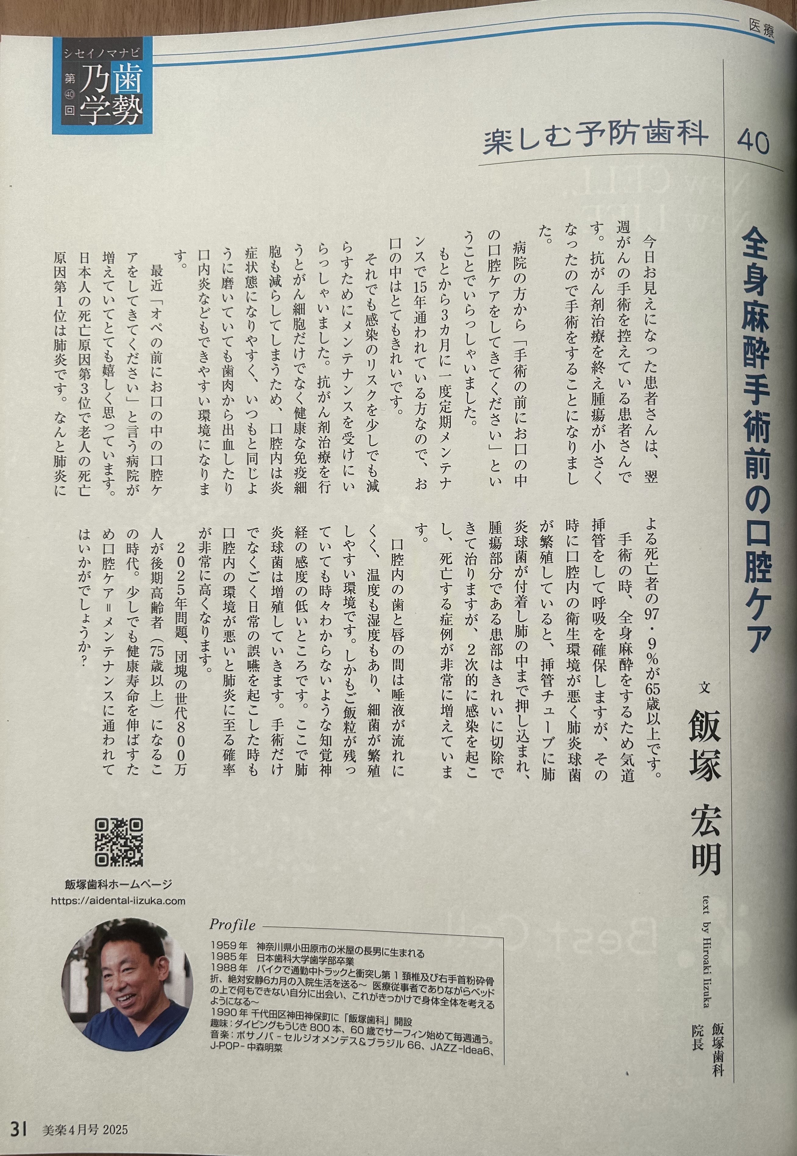 最近「オペの前にお口の中の口腔ケアをしてきてください」
