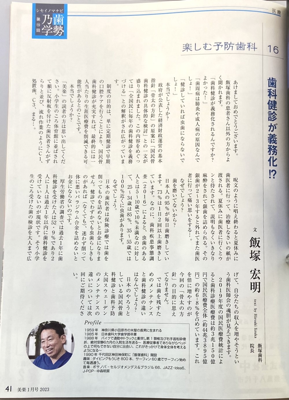 美楽 2023年新年月号『歯科検診が義務化!?』